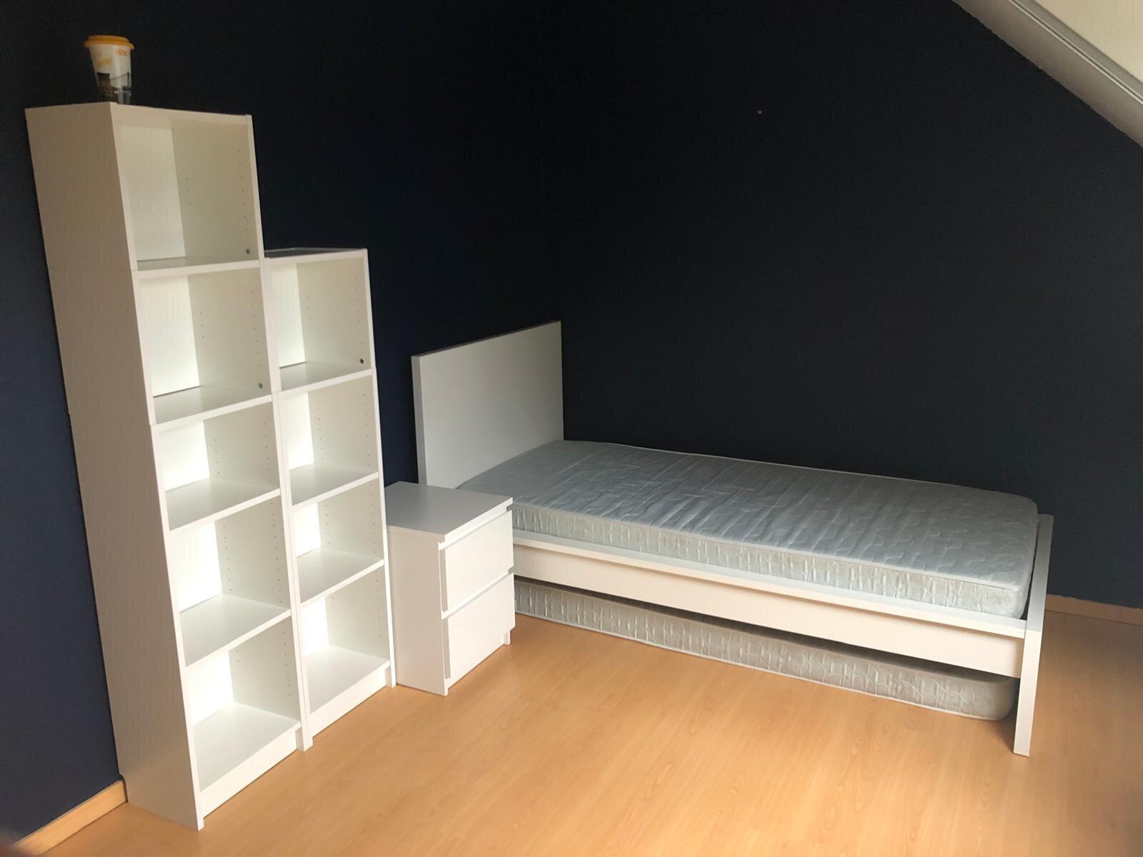 A quelques minutes à pied de l'UMONS (plaine de Nimy), au second niveau, une chambre de 15 m² avec bureau , est proposée à la location.