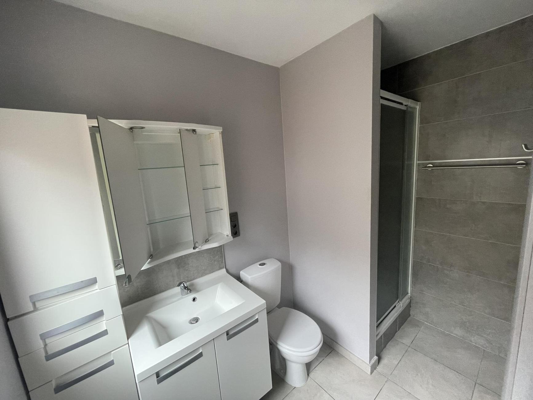 Salle de bain avec douche, WC et lavabo