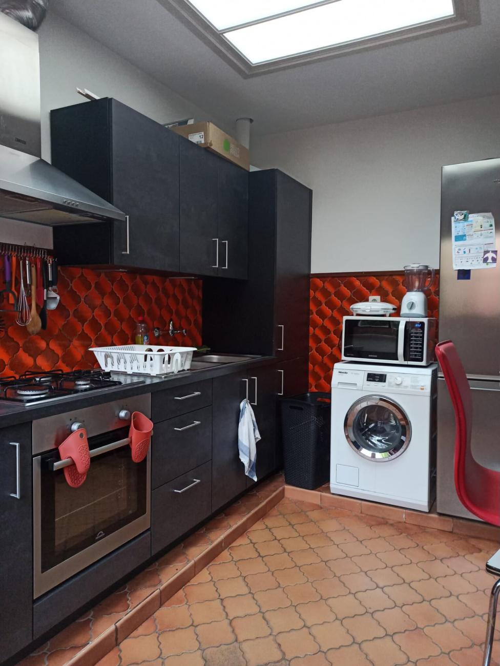 Les WC et la douche sont partagés avec 2 colocataires, tandis que la cuisine et le salon sont communs à 3 personnes.